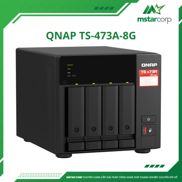 Thiết bị lưu trữ NAS QNAP TS-473A-8G được trang bị bộ vi xử lý AMD Ryze V1000 series V1500B bốn nhân, mang lại hiệu suất hệ thống tuyệt vời với tối đa bốn nhân / 8 luồng và Turbo Core lên đến 2.2 GHz. TS-473A-8G có hai cổng LAN RJ45 2.5GbE và hai khe cắm PCIe Gen 3, cho phép linh hoạt triển khai mạng 5GbE/10GbE. Hai khe cắm SSD M.2 NVMe cho Công nghệ Qtier và Bộ nhớ đệm SSD cho phép tối ưu hóa lưu trữ liên tục. Đồng thời, NAS QNAP TS-473A-8G hỗ trợ QTS và QuTS hero, cho phép người dùng linh hoạt chuyển đổi hệ điều hành theo nhu cầu.